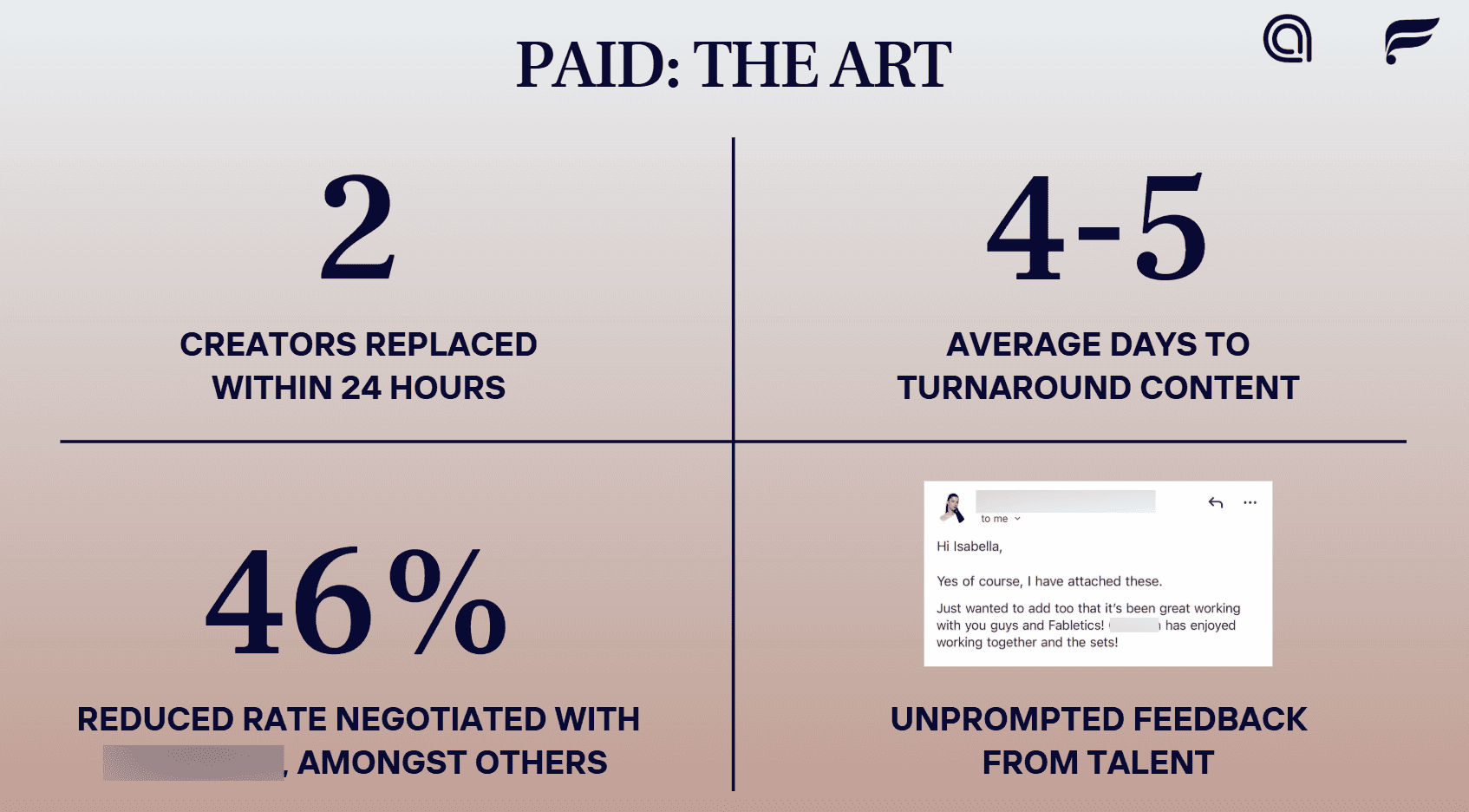 Hands-off delivery → Fabletics had minimal admin load while campaign was executed end-to-end.